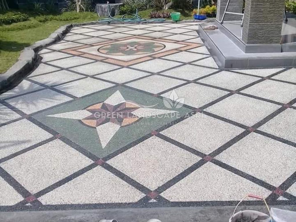 Green Landscape Asri tidak hanya melayani pemasangan standar. Kami juga menawarkan layanan desain motif custom yang bisa disesuaikan dengan gaya rumah, selera pribadi, bahkan tema tertentu. Klien bisa memilih dari katalog kami atau membawa desain sendiri, dan tim kami akan mengubahnya menjadi pola batu sikat yang memukau.