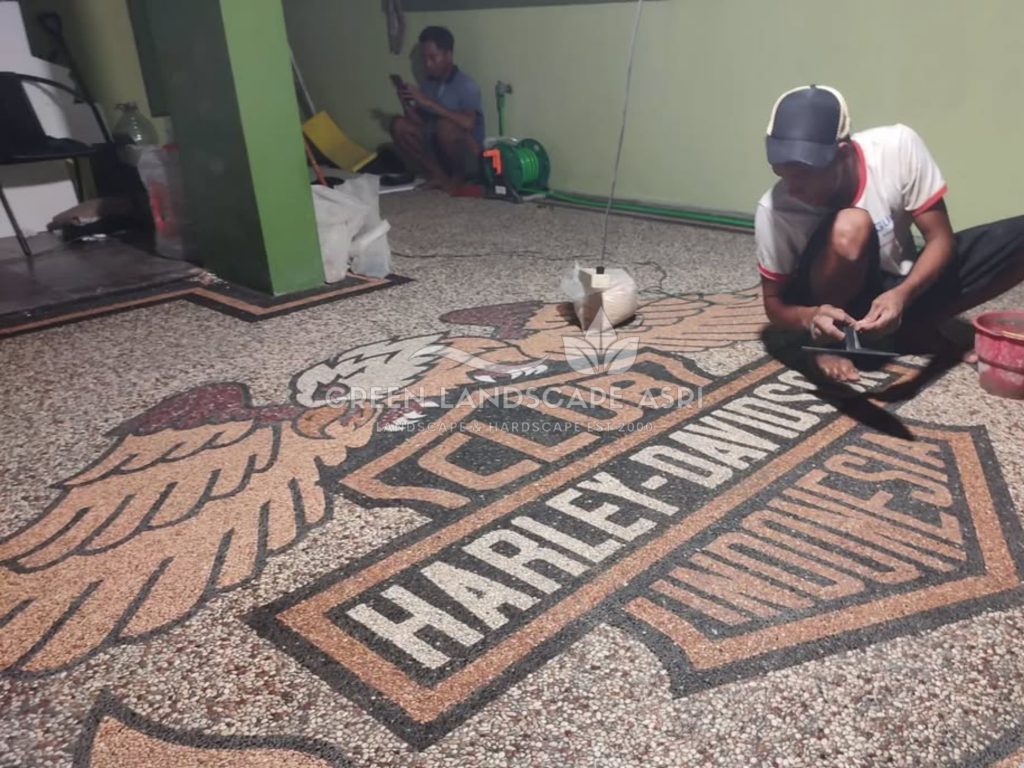 Green Landscape Asri tidak hanya melayani pemasangan standar. Kami juga menawarkan layanan desain motif custom yang bisa disesuaikan dengan gaya rumah, selera pribadi, bahkan tema tertentu. Klien bisa memilih dari katalog kami atau membawa desain sendiri, dan tim kami akan mengubahnya menjadi pola batu sikat yang memukau.