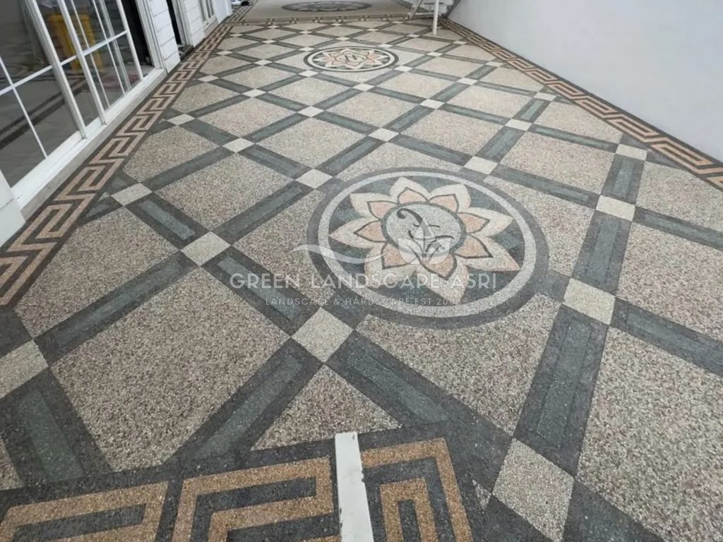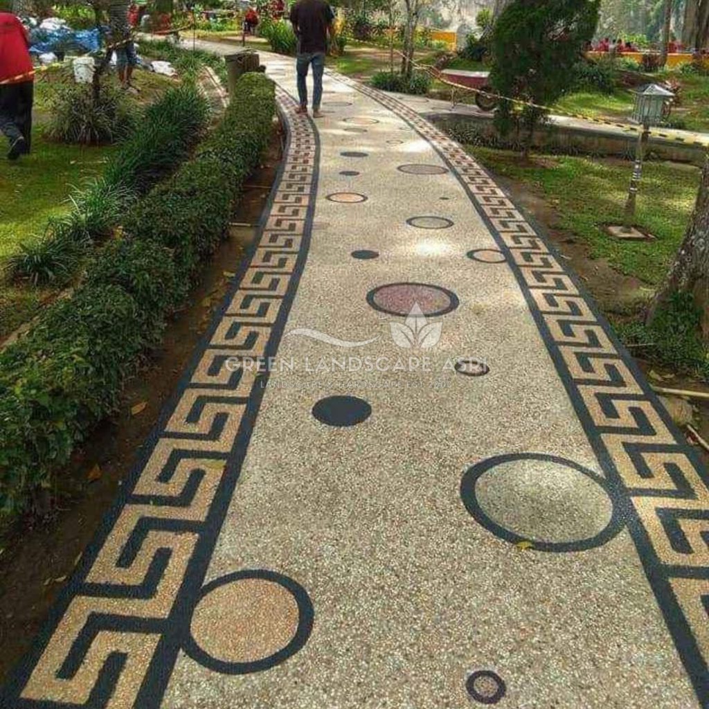 - Taman atau Jalur Setapak: Gunakan motif alami atau spiral agar menyatu dengan elemen hijau. Kombinasi warna cerah membuat area ini terasa lebih hidup.
