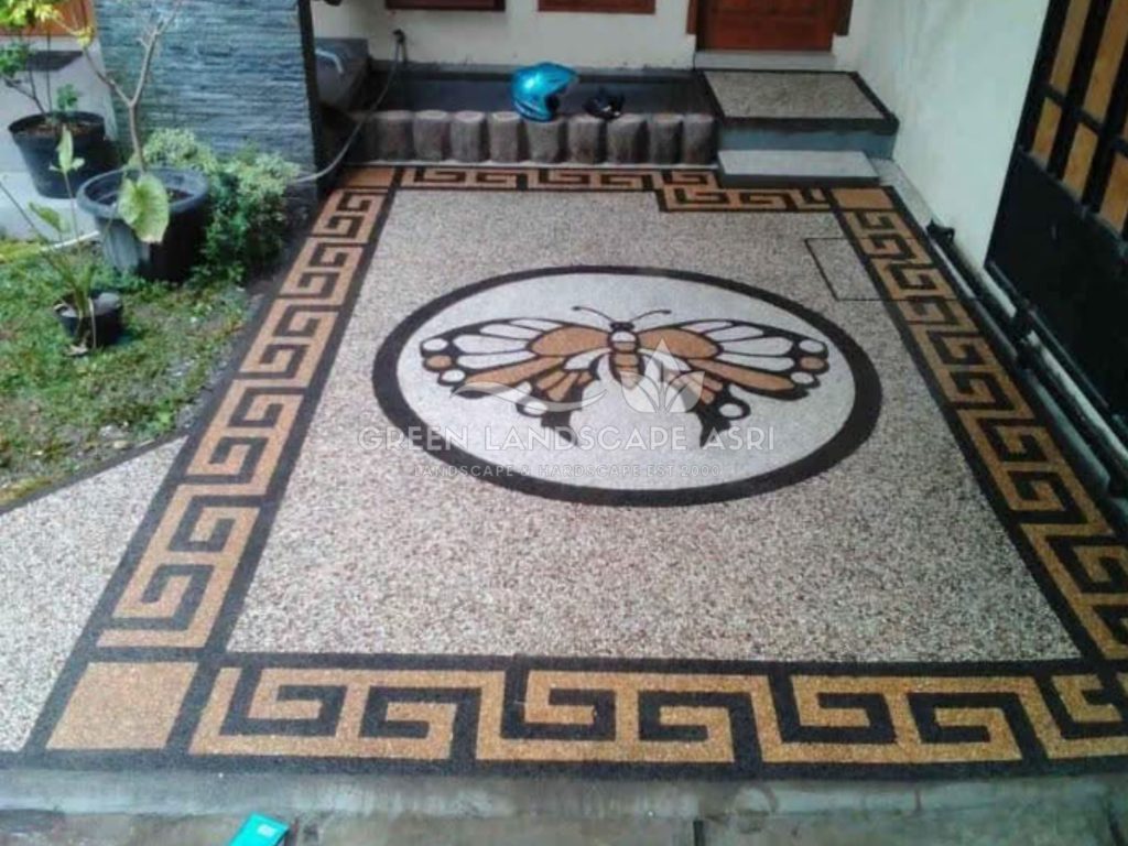 Green Landscape Asri tidak hanya melayani pemasangan standar. Kami juga menawarkan layanan desain motif custom yang bisa disesuaikan dengan gaya rumah, selera pribadi, bahkan tema tertentu. Klien bisa memilih dari katalog kami atau membawa desain sendiri, dan tim kami akan mengubahnya menjadi pola batu sikat yang memukau.