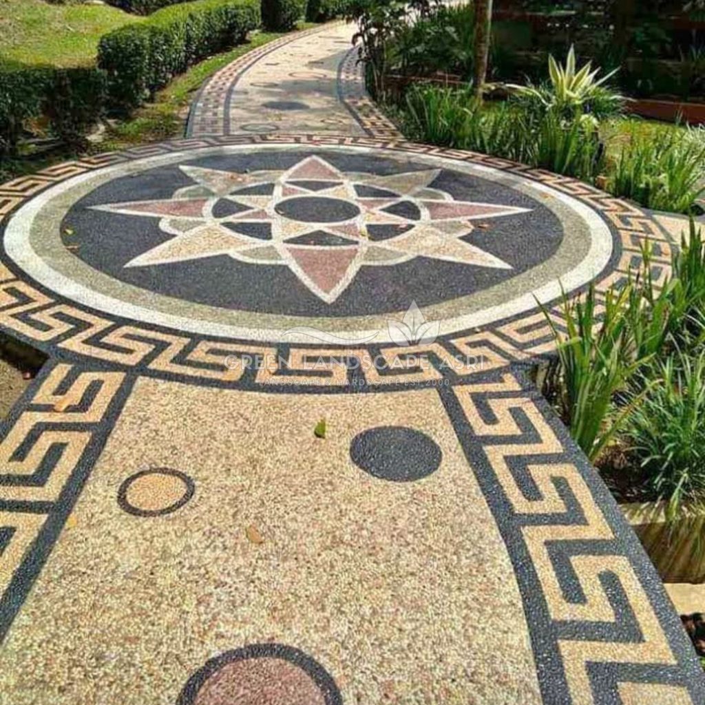 Selain kuat, batu sikat juga memiliki nilai estetika tinggi. Dengan beragam pilihan warna, bentuk, dan pola, batu sikat mampu menciptakan desain visual yang menarik dan unik. Di tangan profesional seperti tim Green Landscape Asri, batu sikat dapat dikreasikan menjadi berbagai motif yang sesuai dengan gaya arsitektur rumah Anda-mulai dari minimalis modern, tradisional Jawa, hingga tema tropis ala Bali.